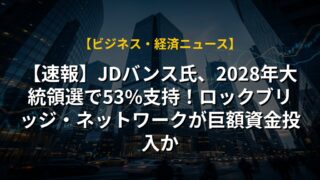 【速報】JDバンス氏、2028年大統領選で53%支持!ロックブリッジ・ネットワークが巨額資金投入か