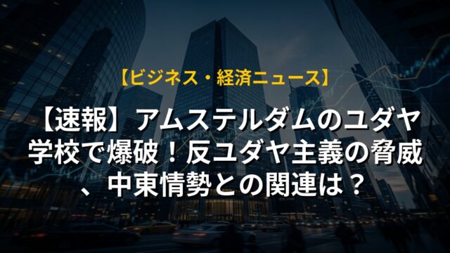 【速報】アムステルダムのユダヤ学校で爆破!反ユダヤ主義の脅威、中東情勢との関連は?