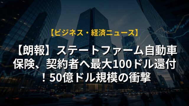 【朗報】ステートファーム自動車保険、契約者へ最大100ドル還付!50億ドル規模の衝撃