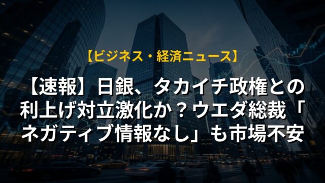 【速報】日銀、タカイチ政権との利上げ対立激化か?ウエダ総裁「ネガティブ情報なし」も市場不安