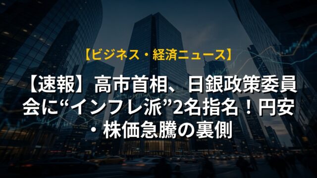 【速報】高市首相、日銀政策委員会に“インフレ派”2名指名!円安・株価急騰の裏側