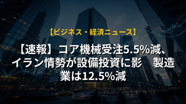 【速報】コア機械受注5.5%減、イラン情勢が設備投資に影 製造業は12.5%減
