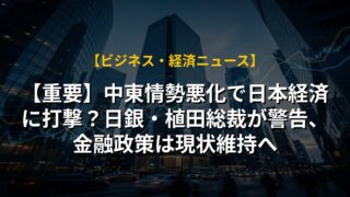 【重要】中東情勢悪化で日本経済に打撃?日銀・植田総裁が警告、金融政策は現状維持へ