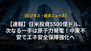 【速報】日米投資5500億ドル、次なる一手は原子力発電!中東不安でエネ安全保障強化へ