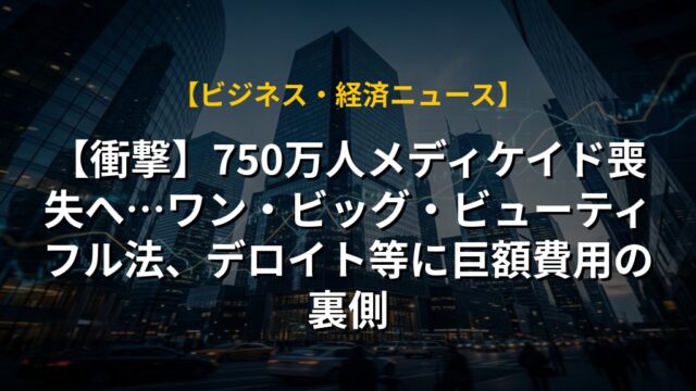 【衝撃】750万人メディケイド喪失へ…ワン・ビッグ・ビューティフル法、デロイト等に巨額費用の裏側