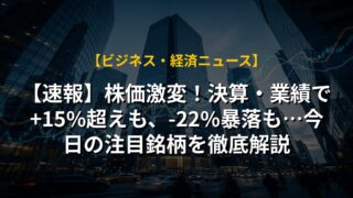 【速報】株価激変!決算・業績で+15%超えも、-22%暴落も…今日の注目銘柄を徹底解説