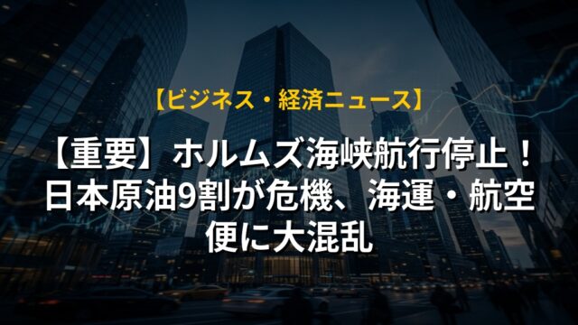 【重要】ホルムズ海峡航行停止!日本原油9割が危機、海運・航空便に大混乱
