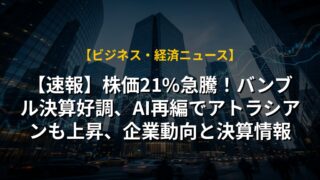 【速報】株価21%急騰!バンブル決算好調、AI再編でアトラシアンも上昇、企業動向と決算情報