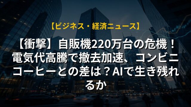 【衝撃】自販機220万台の危機!電気代高騰で撤去加速、コンビニコーヒーとの差は?AIで生き残れるか