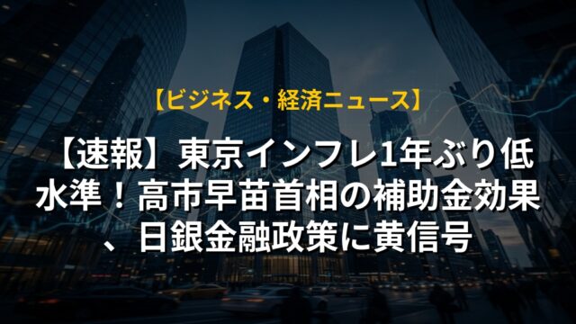 【速報】東京インフレ1年ぶり低水準!高市早苗首相の補助金効果、日銀金融政策に黄信号