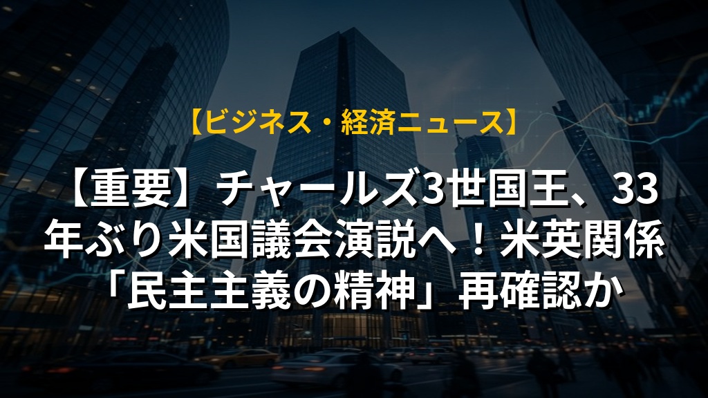 - チャールズ3世国王が、アメリカ議会での演説を実施予定。米英の特別な関係を再確認する機会となる。