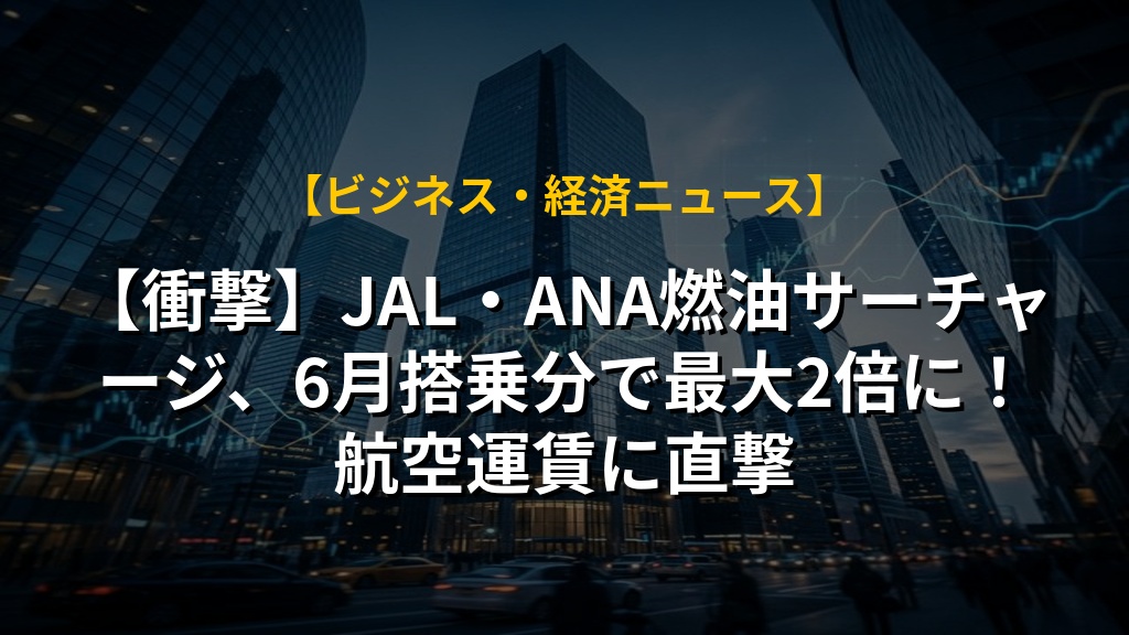 - イラン情勢により、日本航空(JAL)と全日空(ANA)は6月搭乗分から国際線燃油サーチャージを最大2倍に引き上げる見込み。