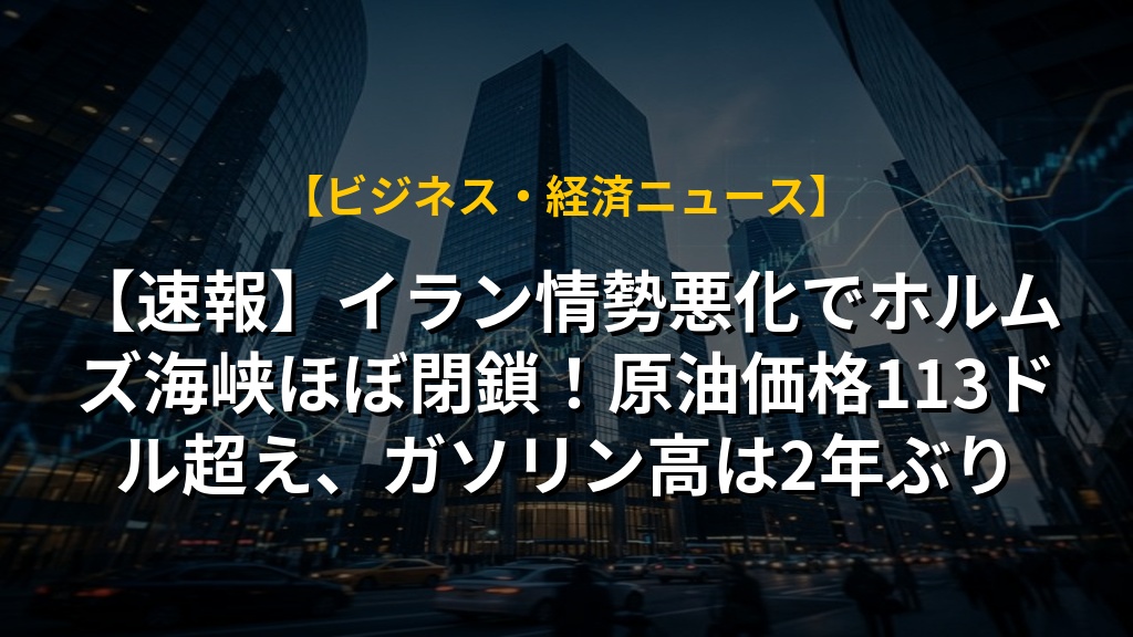 【速報】イラン情勢悪化でホルムズ海峡ほぼ閉鎖!原油価格113ドル超え、ガソリン高は2年ぶり