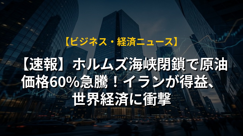 【速報】ホルムズ海峡閉鎖で原油価格60%急騰!イランが得益、世界経済に衝撃