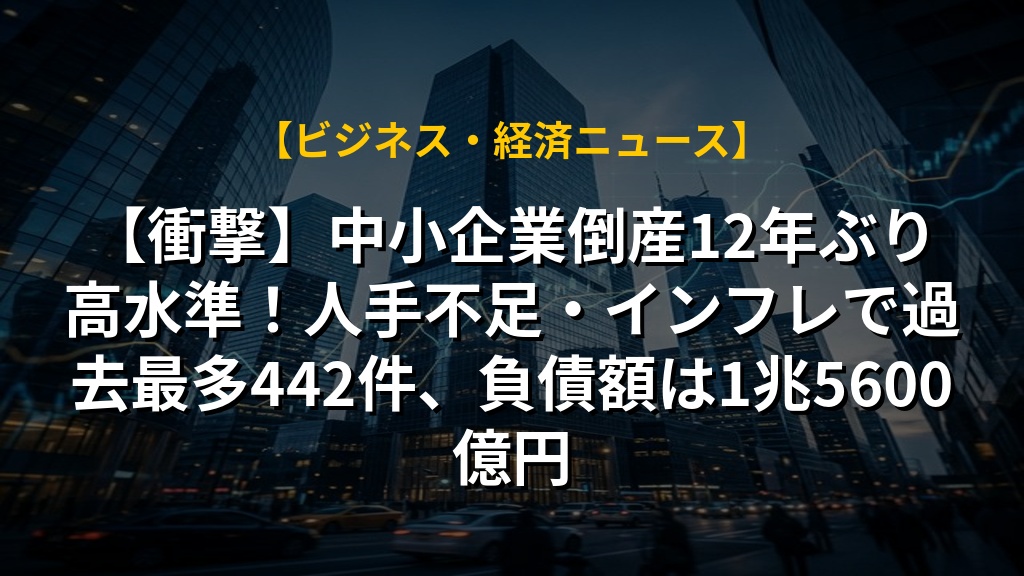 【衝撃】中小企業倒産12年ぶり高水準!人手不足・インフレで過去最多442件、負債額は1兆5600億円の注目ポイントまとめ