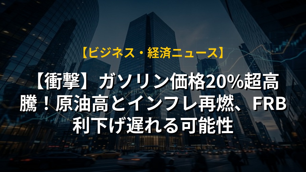 【衝撃】ガソリン価格20%超高騰!原油高とインフレ再燃、FRB利下げ遅れる可能性