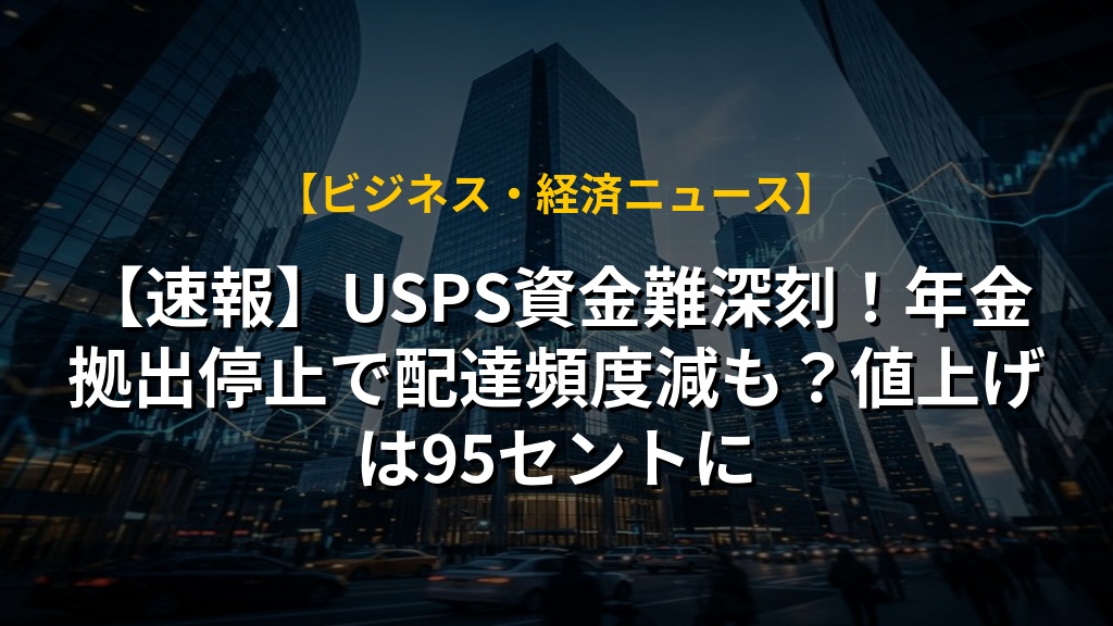 【速報】USPS資金難深刻!年金拠出停止で25億ドル確保、郵便停止の危機回避なるかUSPS資金難のニュース概要 アメリカ合衆国郵便公社(USPS)は、資金難に直面しており、職員や公務員向けの年金制度である連邦職員退職制...