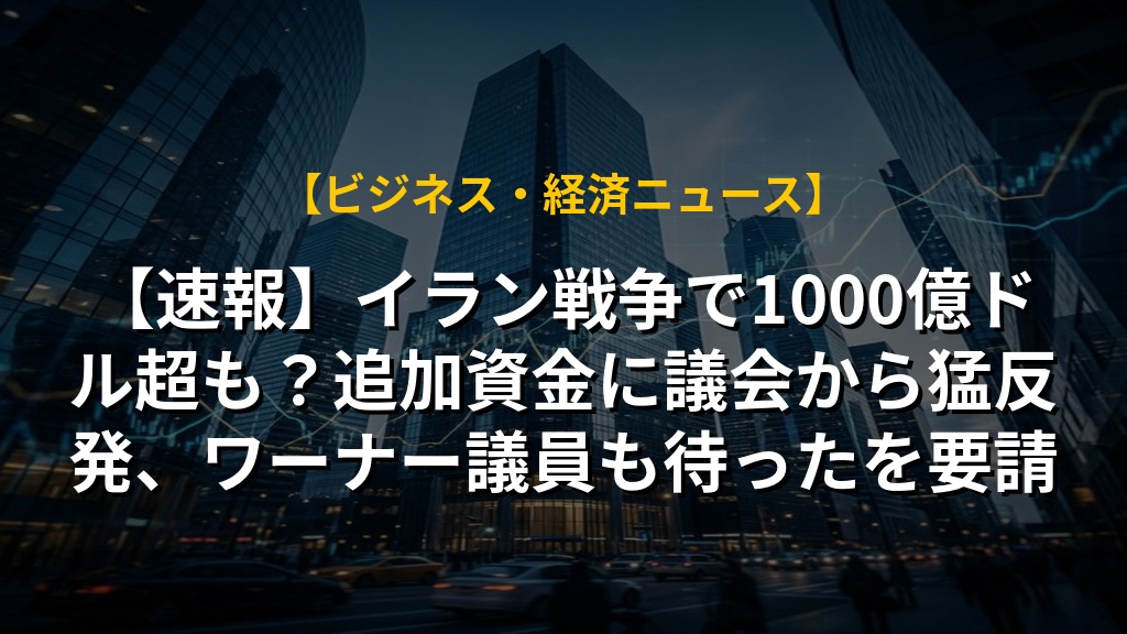 【速報】イラン戦争で1000億ドル超も?追加資金に議会から猛反発、ワーナー議員も待ったを要請