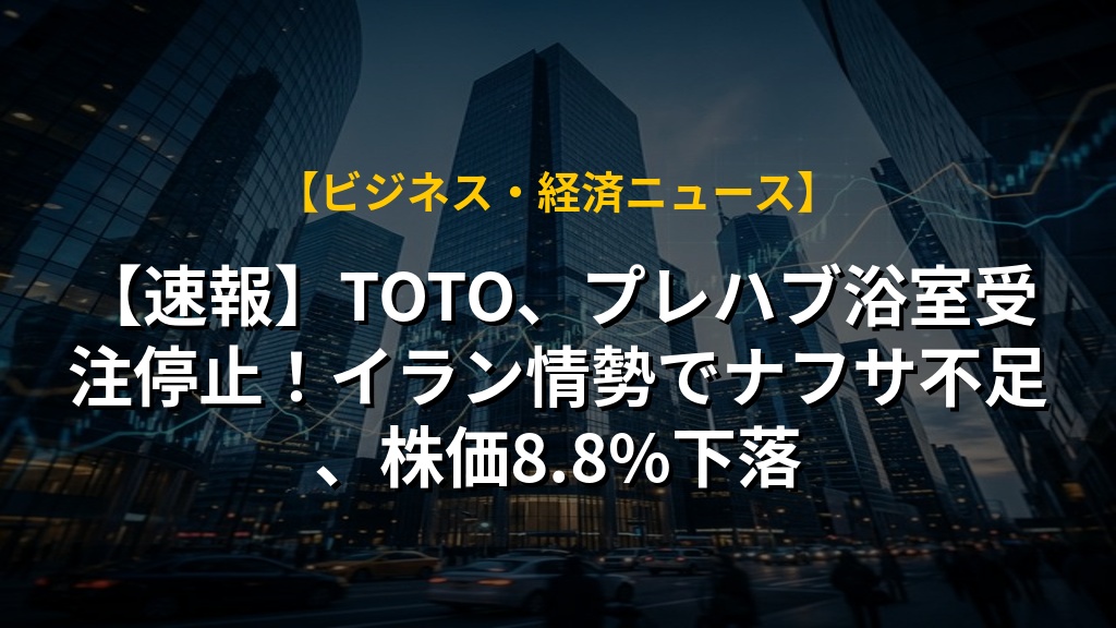 【速報】TOTO、プレハブ浴室受注停止!イラン情勢でナフサ不足、株価8.8%下落