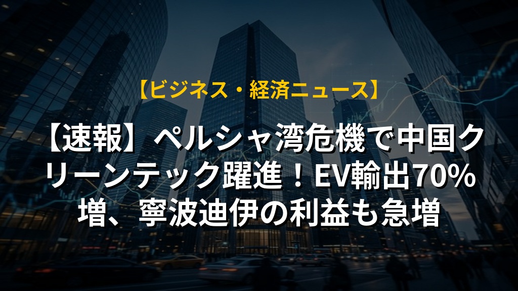【速報】ペルシャ湾危機で中国クリーンテック躍進!EV輸出70%増、寧波迪伊の利益も急増の注目ポイントまとめ