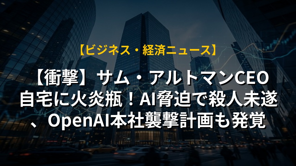 【衝撃】サム・アルトマンCEO自宅に火炎瓶!AI脅迫で殺人未遂、OpenAI本社襲撃計画も発覚