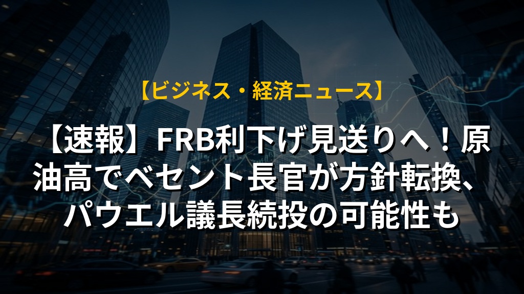 【速報】FRB利下げ見送りへ!原油高でベセント長官が方針転換、パウエル議長続投の可能性も