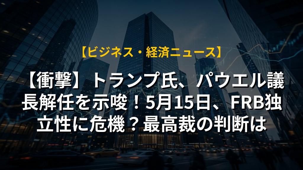 【衝撃】トランプ氏、パウエル議長解任を示唆!5月15日、FRB独立性に危機?最高裁の判断は