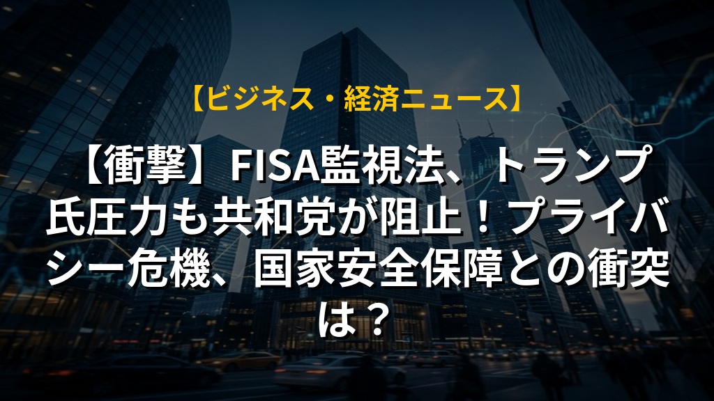 【速報】FISA 702条更新、米下院で暗礁!AI時代のデータ収集とプライバシー保護の行方は?FISA 702条更新のニュース概要 外国情報監視法(FISA)702条の更新を巡り、アメリカ下院では大きな障害が生じています。 この...