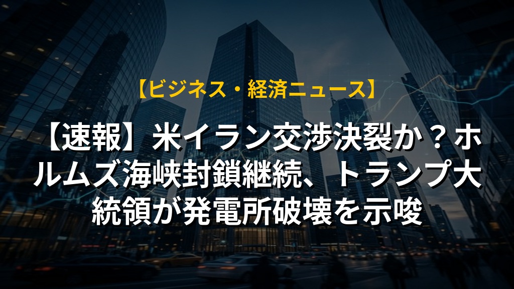 【速報】米イラン交渉決裂か?ホルムズ海峡封鎖継続、トランプ大統領が発電所破壊を示唆の注目ポイントまとめ