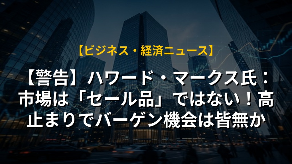 著名投資家のハワード・マークス氏が、現在の市場は割安とは言えず、バーゲンを待つのは難しいと警鐘を鳴らしています。地政学的リスクが高まっても市場は強気で、楽観的な見方が優勢な状況が続いています。これは、AIへの期待など将来成長への楽観論が背景にあると考えられますが、リスクを過小評価している可能性も。今後の予期せぬ事態に備え、慎重なリスク管理が重要になるでしょう。市場のモメンタムはいつ転換してもおかしくない、という認識を忘れずにいたいですね。