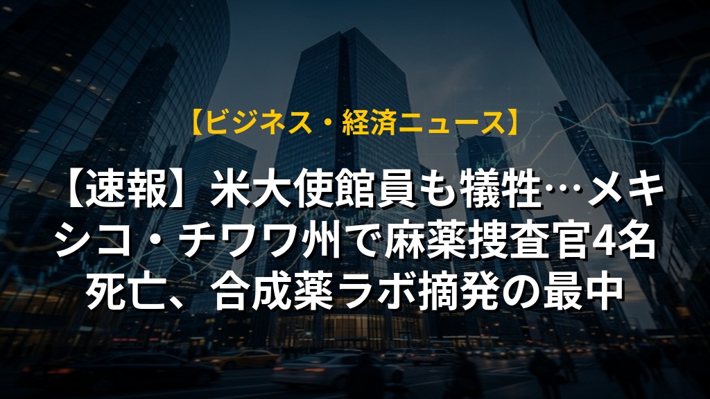 メキシコ北部で、麻薬捜査官4名が交通事故で亡くなられるという痛ましいニュースが届きました。アメリカ大使館員の方々も含まれており、麻薬対策協力の難しさと危険性が改めて浮き彫りになりましたね。大規模な合成薬ラボ摘発の帰路での事故ということで、関係者の皆様のご尽力と犠牲に心よりお悔やみ申し上げます。アメリカ大使も哀悼の意を表されており、今後の米墨間の連携がより一層重要になってくるでしょう。根本的な解決には、需要抑制や貧困対策も不可欠だと考えられます。