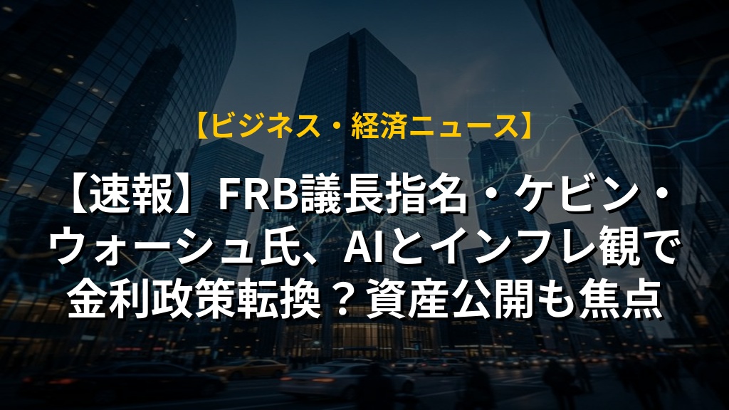 【速報】FRB議長指名・ケビン・ウォーシュ氏、AIとインフレ観で金利政策転換?資産公開も焦点の注目ポイントまとめ