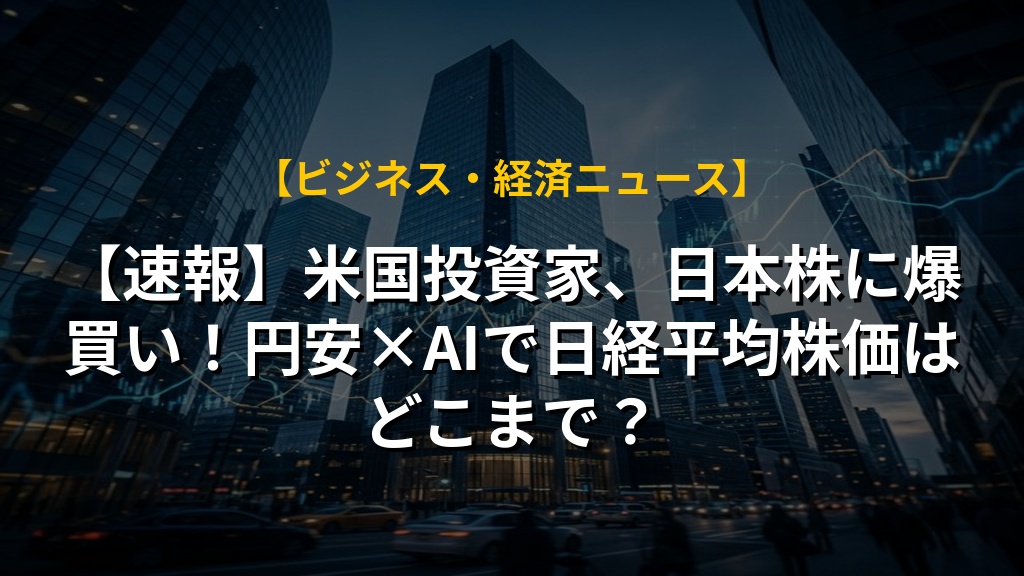【速報】米国投資家、日本株に爆買い!円安×AIで日経平均株価はどこまで?