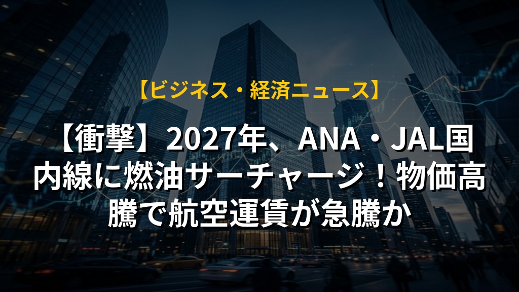 ANAが2027年度からの国内線に燃料サーチャージ導入を検討しているニュースですね。中東情勢の悪化による燃料価格高騰が大きな要因で、JALやスカイマークも同様の動きを示すと予想されます。これまで国内線は距離が短いため導入されていませんでしたが、状況が変わってきました。