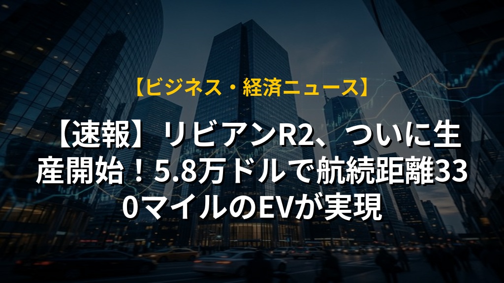 リビアンが新型EV「R2」の生産を開始しました。主力モデル「R1」を改良し、5万8千ドルからという手頃な価格を実現した点が注目です。これまで高級路線だったリビアンが、より多くの顧客層へ広がる大きな一歩となります。