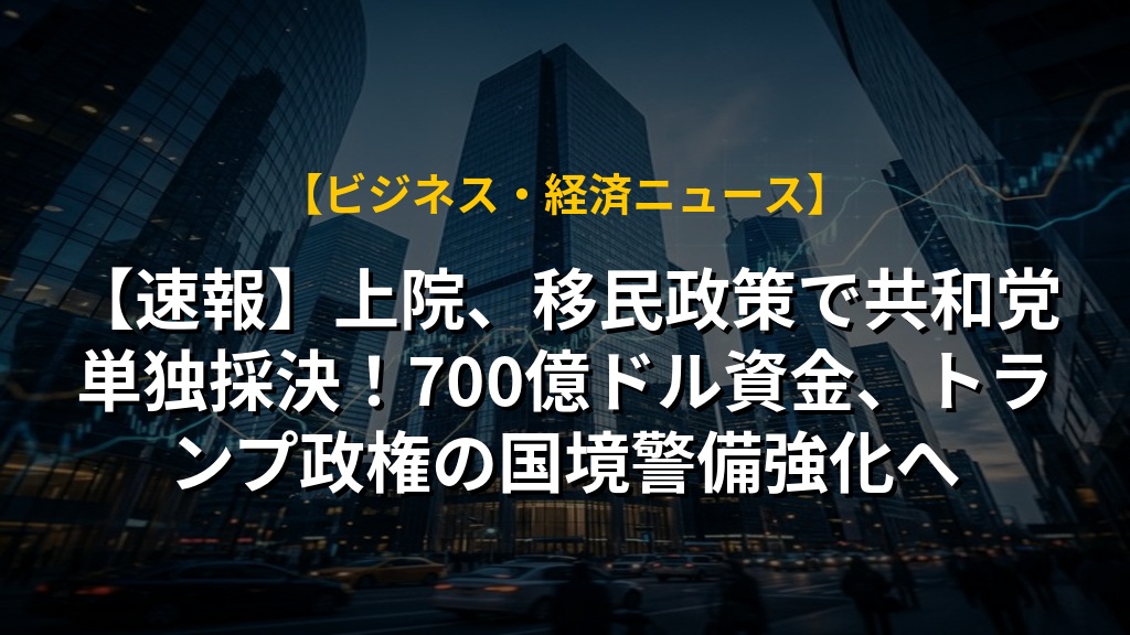 【速報】上院、移民政策で共和党単独採決!700億ドル資金、トランプ政権の国境警備強化へ