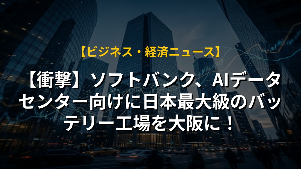 - ソフトバンクは、大阪府内の工場を大規模バッテリー生産拠点へ転換。自社AIデータセンターの電力供給を目指す。