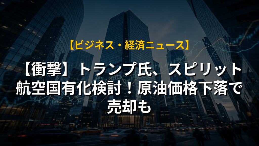 トランプ大統領が、経営難のスピリット航空の一時国有化を検討しているというニュースですね。原油価格下落後の売却を視野に入れ、雇用維持にも意欲を示しています。航空会社への政府介入は異例で、今後の業界に大きな影響を与える可能性があります。