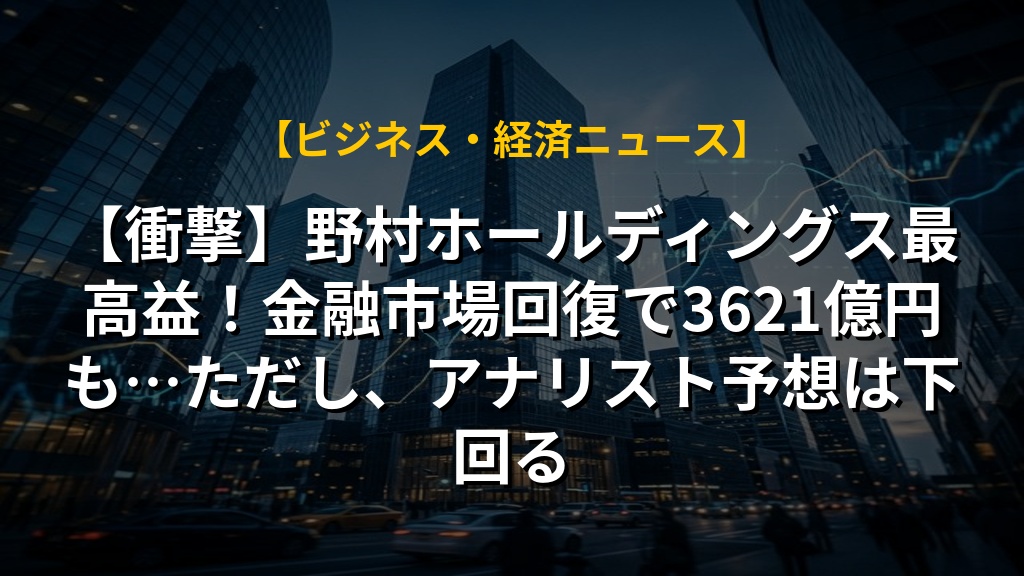 野村ホールディングスが2年連続で過去最高益を確定し、通期利益は3621億円となりました。日本の金融市場の回復が追い風となりましたが、四半期利益はアナリスト予想を下回りました。今後の成長には、中東情勢やプライベートクレジット市場の動向など、世界経済の不確実性が試金石となります。野村HDがオルタナティブ資産への進出を成功させ、更なる成長を遂げられるか、引き続き注目していきたいです。