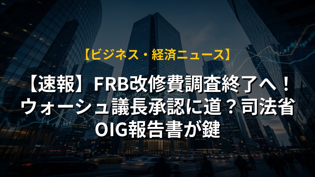 【速報】FRB改修費調査終了へ!ウォーシュ議長承認に道?司法省OIG報告書が鍵
