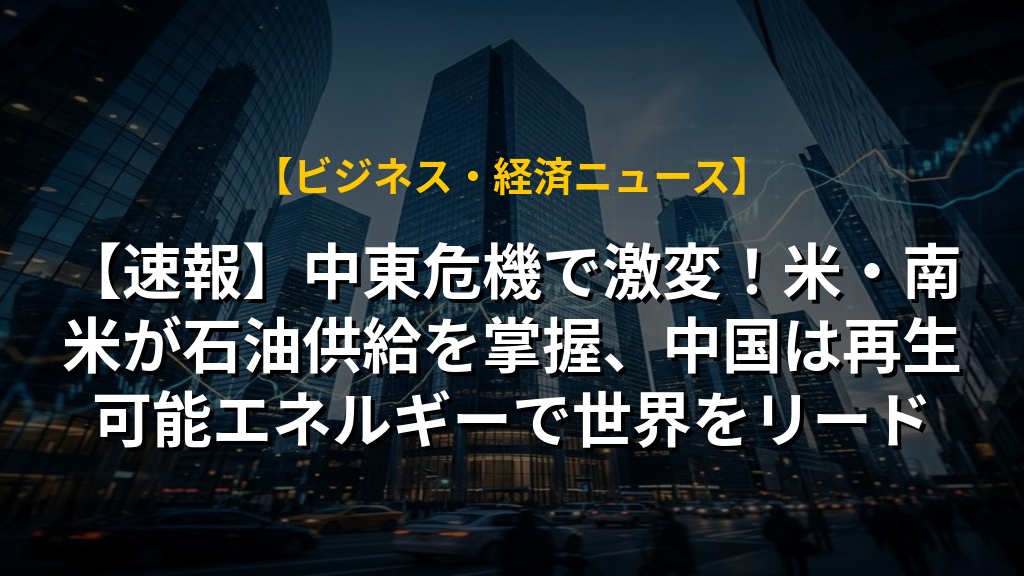 中東情勢の不安定化により、世界のエネルギー秩序が大きく変動しつつあります。これまで中東が支配してきた石油市場において、アメリカ大陸諸国が新たな供給源として台頭し、同時に中国が再生可能エネルギー分野で主導権を握る動きが加速しています。