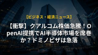 【衝撃】クアルコム株価急騰!OpenAI提携でAI半導体市場を席巻か?ドミノピザは急落主要株価のニュース概要 クアルコムは、エヌビディアと協力してスマートフォン向けプロセッサを開発しているというティンファン・インターナショ...