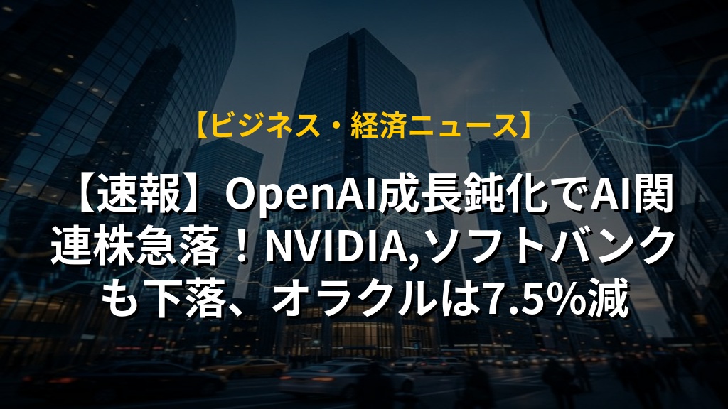AI関連企業の株価が大きく下落しましたね。OpenAIの成長鈍化が報じられ、AIブームへの過剰な期待が修正された形です。オラクルやNVIDIAなど、これまで高成長を期待されていた企業も影響を受けており、AI投資の「質」を問う声が強まっています。