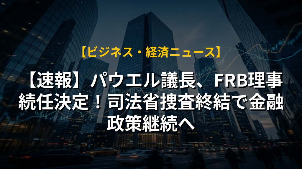 【速報】パウエル議長、FRB理事続任決定!司法省捜査終結で金融政策継続へ