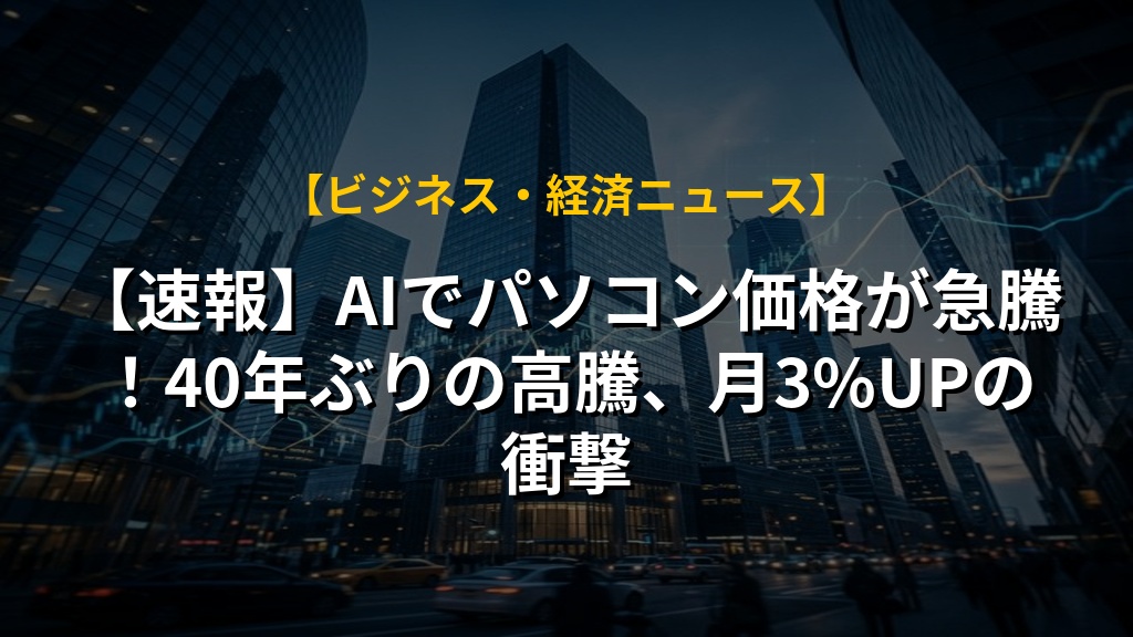 AIの普及でパソコン価格が40年ぶりに上昇しているというニュースですね。高性能化に必要なメモリチップ不足が原因で、ソフトウェアや周辺機器も高騰しており、家計への影響は避けられません。