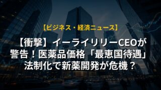 【衝撃】イーライリリーCEOが警告!医薬品価格「最恵国待遇」法制化で新薬開発が危機?