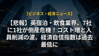 【悲報】英宿泊・飲食業界、7社に1社が倒産危機!コスト増と人員削減の波、経済自信指数は過去最低に