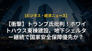 【衝撃】トランプ氏批判!ホワイトハウス東棟建設、地下シェルター継続で国家安全保障優先か?