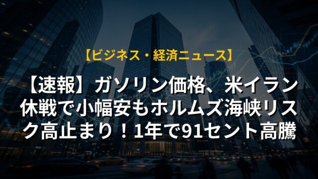 【速報】ガソリン価格、米イラン休戦で小幅安もホルムズ海峡リスク高止まり!1年で91セント高騰