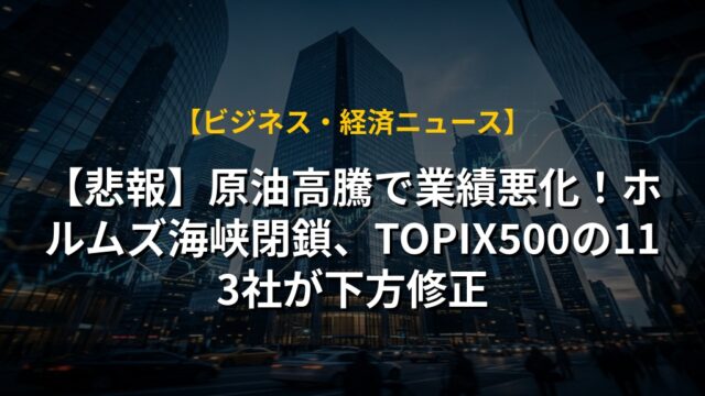 【悲報】原油高騰で業績悪化!ホルムズ海峡閉鎖、TOPIX500の113社が下方修正